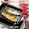 陶板での魚焼きは油が溜まってギトギトしがち。この耐熱陶板プレートは中央が高く、そこから縁にかけて下がった形状なので、落ちた脂は端に溜まり引火の心配もありません。