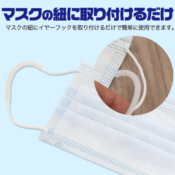 マスクの紐にイヤーフックを取り付けるだけで簡単に使用できます。