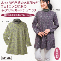 ふっくらと凹凸感のある花柄がフェミニンな印象のチュニック。毛混でソフトでやわらかな温かみがあり、襟元は吸湿発熱素材で肌寒い季節にぴったり。からだのラインを拾わないゆったりAラインのきれいなシルエットだから、体型カバーしつつスッキリした印象に。長めの丈感で気になる腰まわりも自然にカバーします。明るい印象のイエロー系は、落ち着きのあるカラーで大人コーデが楽しめ、シックで上品な装いなら、人気のパープル系でエレガントな印象に。