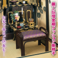立ち座りが楽な座面高31cm。手すりが付き、足腰に不安のある方も無理なく立ち座りできます。クッシ仏前での日々のお勤めや、法事の際などに重宝する、人気のアーム付き座椅子。長時間座っても疲れにくく、しっかりと安定感のあるアームがあることで立ち座りが楽にでき、持ち運びにも便利です。日本国内で作った高級金襴をクッション生地に使用し、仏前に風格と彩りを添え、仏間を優雅で荘厳ある空間に演出します。